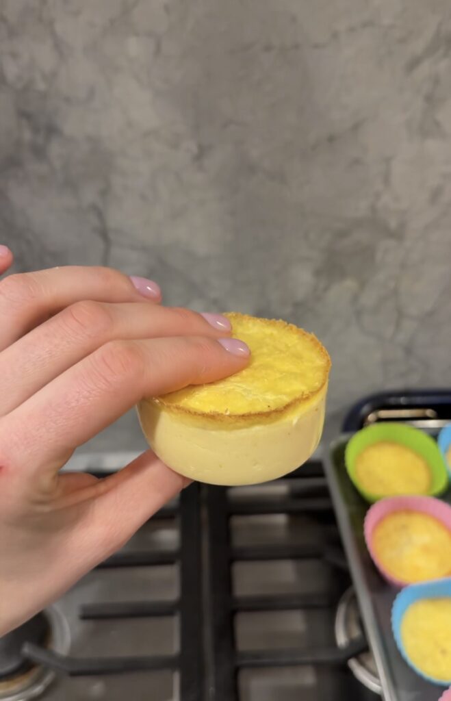 3. Transfer egg mixture evenly into silicone muffin cups (should make ~12 larger egg bites)