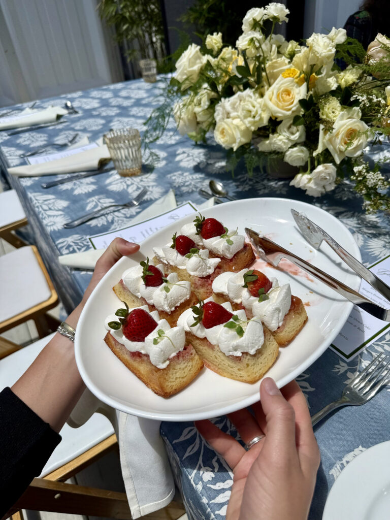 After the cooking demo we were ushered out to a patio overlooking the golf course and ocean, where we were served appetizers and then got to enjoy Chef Florence’s BBQ chicken, coleslaw, potato salad, and even his signature upside down strawberry cake. We really couldn’t have asked for a better lunch!